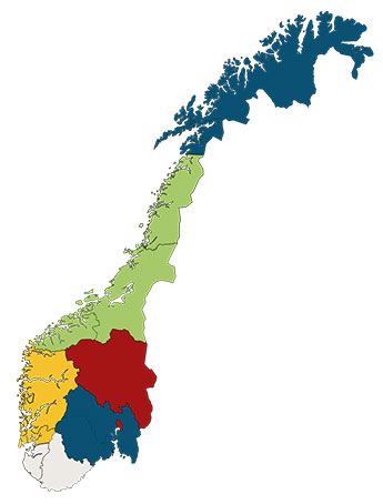 ► Rødt område: Innlandet og Oslo